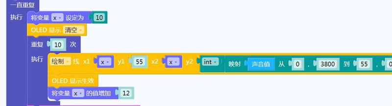 通过映射将采集的声音值从 0-4095(声音传感器的返回值为0-3800)对应到55-0。