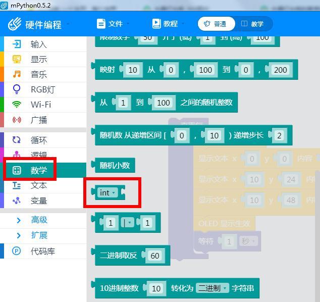 (2)数学块中,转整数int数值