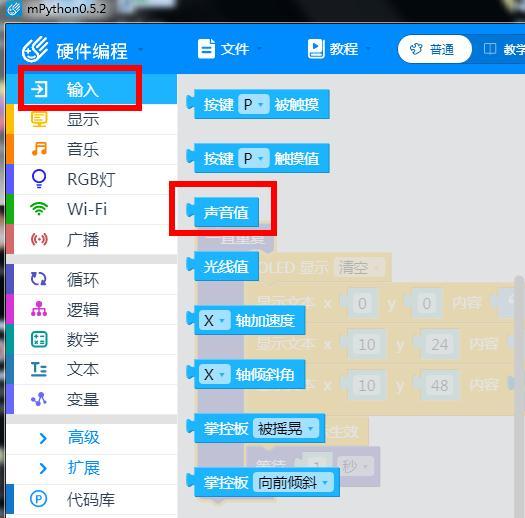 (1)输入块中,声音值指令