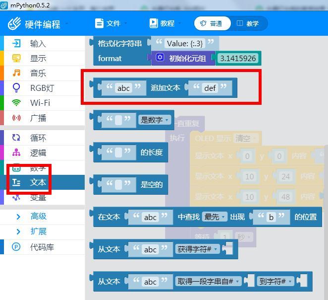 (3)文本块中,添加追加文本指令