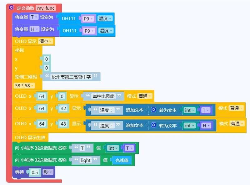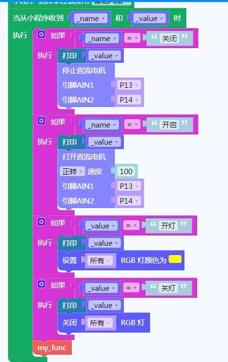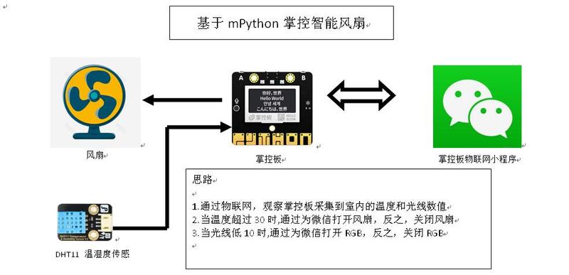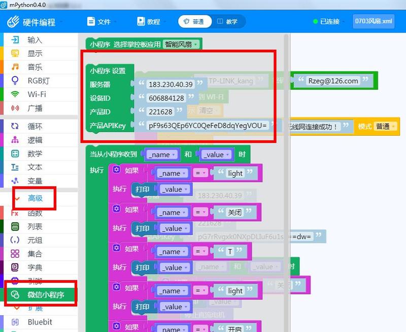 1、登陆掌控板物联网程序,通过手机发出相关信息,远程控制智能风扇和RGB灯的工作状态;