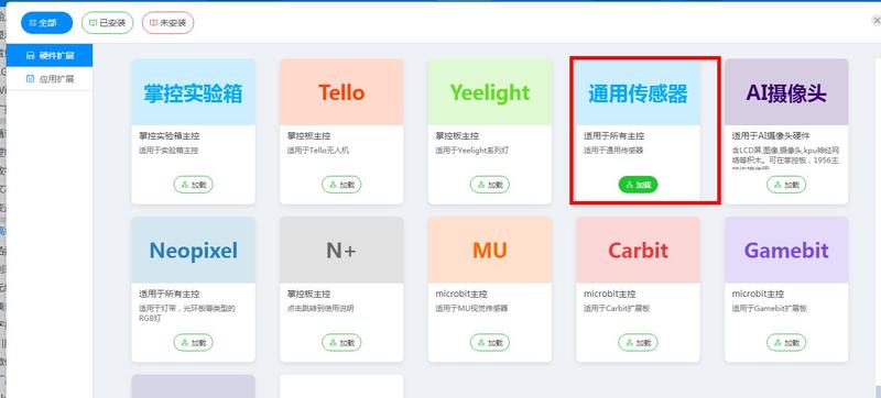 3.在窗体左下角硬件扩展添加通用传感器,