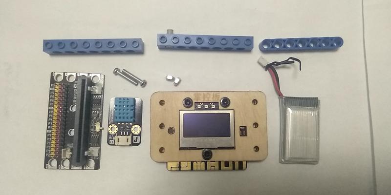 5、风扇控制检测部分:由2个1X8梁、Goodmake扩展板、掌控板、温湿度传感器组成;