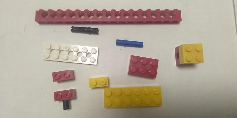 2、风扇支架部分:由1个1x15梁、1个7孔梁、2个2x6梁、两个2x2梁、3个销子组成;