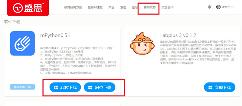 在帮助支持目录下,找到mPython0.5.1,对应的电脑操作系统进行下载。