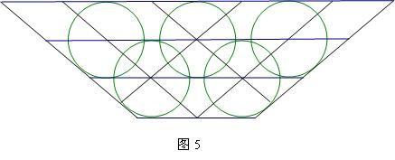 五个圆的圆心及上下两排圆的外公切线位于平行且等距的四条直线上。见图4。