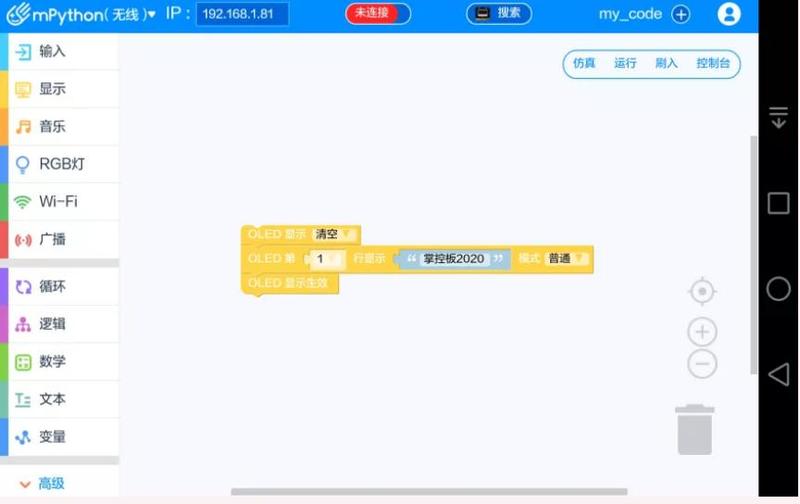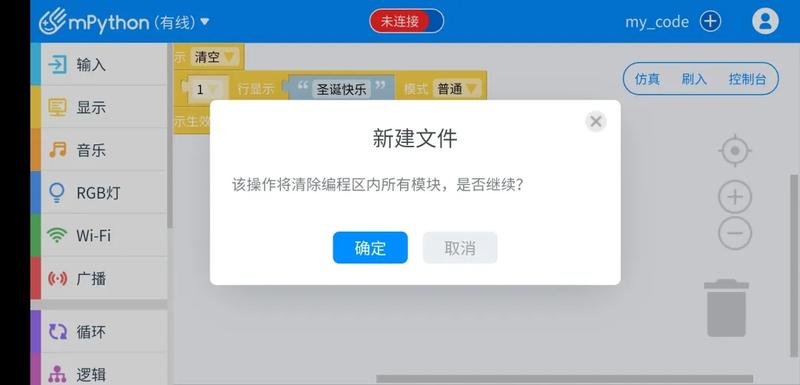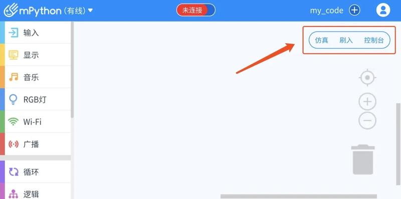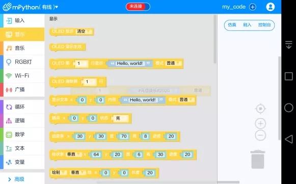 仿真→在没有掌控板的情况下进行图形化效果模拟。