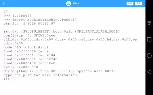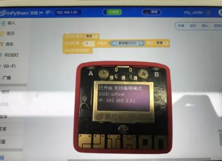 发送配置信息后,掌控板会自动重启进入无线编程模式。如果配置信息有误,掌控板将重新进二维码配置界面。