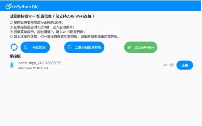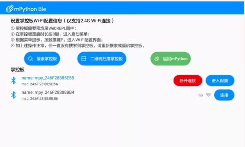 搜索掌控板按钮→搜索出附近所有进入wi-fi配置的掌控板;