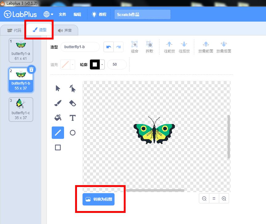 将蝴蝶转换矢量图,选择工具调整蝴蝶的 大小。