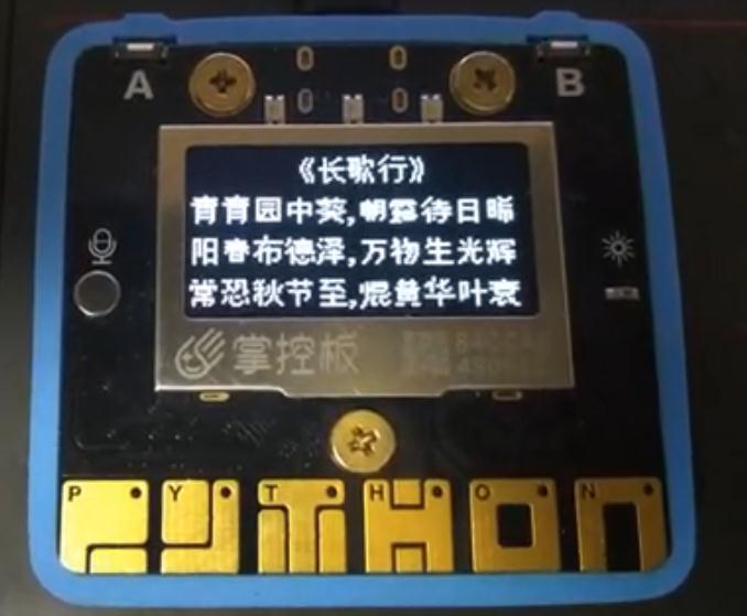 2、当按下掌控板A键,开始播放古诗词《长歌行》.