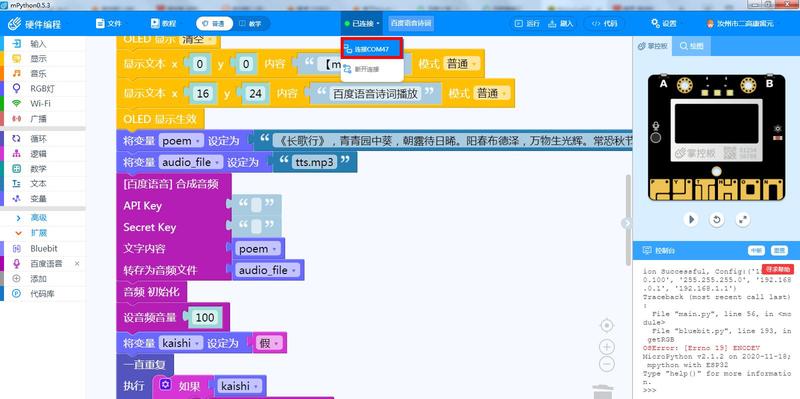 今天分享一篇基于百度大脑平台的《掌控板语音诗词播放器》。