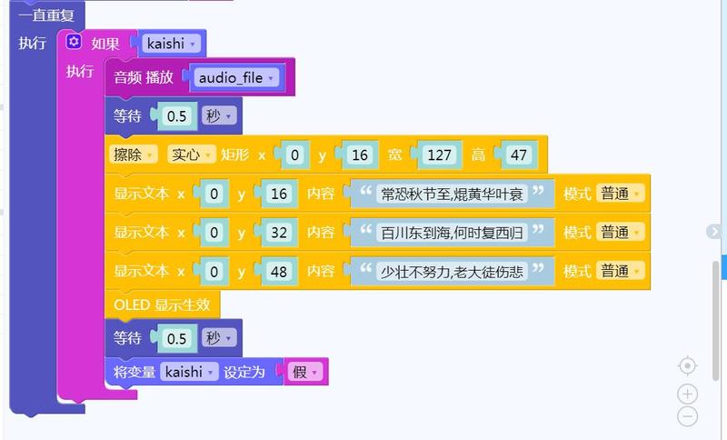 3、当按下掌控板B键,重新播放古诗词《长歌行》.