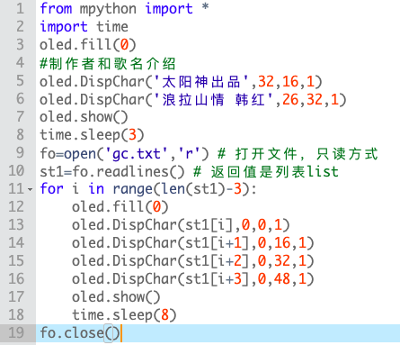 d.用time.sleep(i)来控制显示的时间(要跟唱歌进度一致)