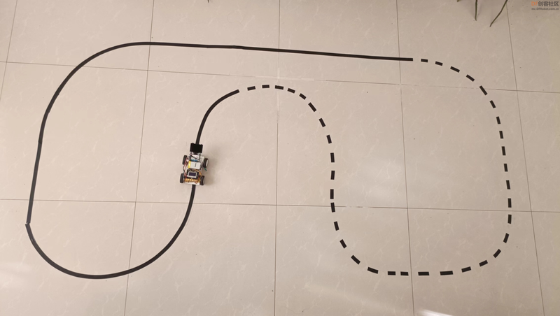 地上的寻线地图也是专门贴的,小于转弯半径的弯小车一定是会脱线的。