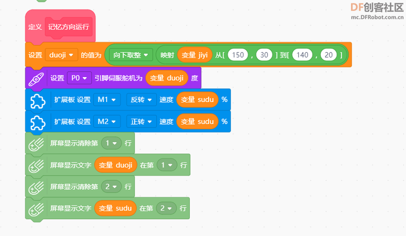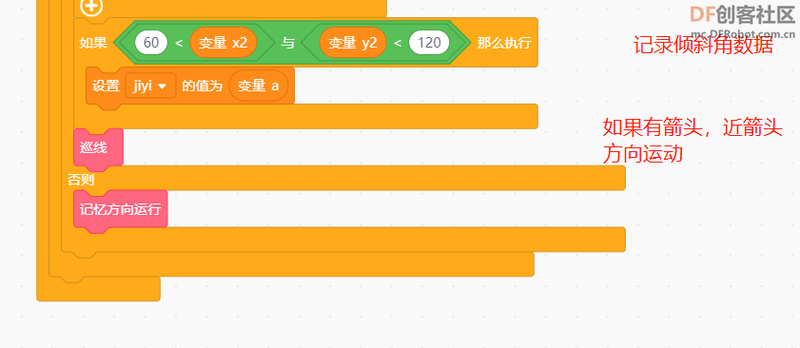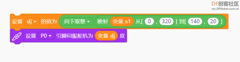 用x2坐标的取值范围0-320映射舵机转向角度140-20(80+-60),这里用更大的转向角度是为减少四轮小车的转弯半径(相比万向轮的三轮小车,四轮方向舵小车转弯半径大多了,所以DF的纸质地图用不了)。
