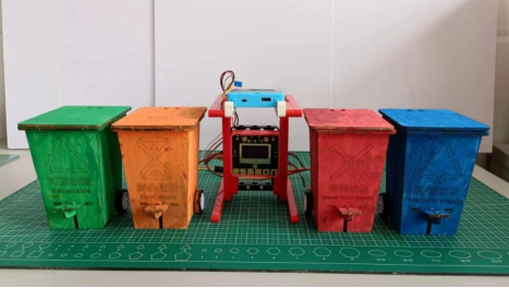 我的这个作品由掌控板和小方舟来制作的垃圾分类系统,它可以自动辨识不同种类的垃圾并将其归入相应的垃圾桶中。我希望通过这个作品来提高人们对垃圾分类的认识和意识,从而更好地保护我们的环境。