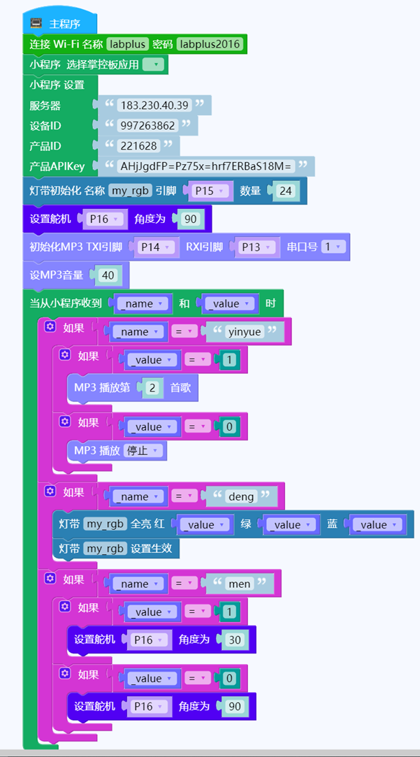 Ⅰ.程序编写——用手机微信小程序控制门的开打、音乐的播放、灯的亮度变化等。
